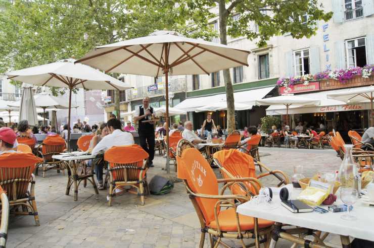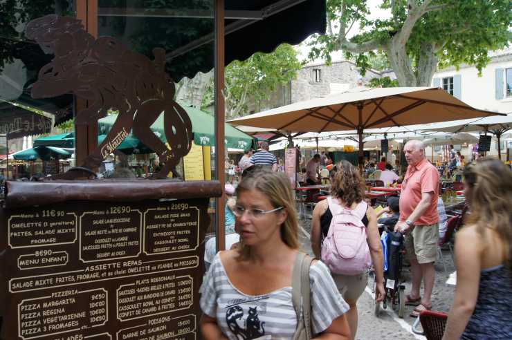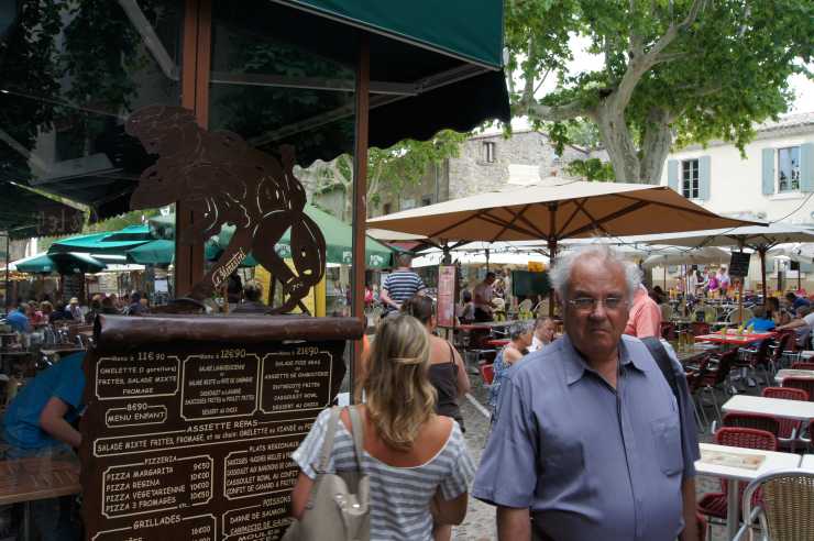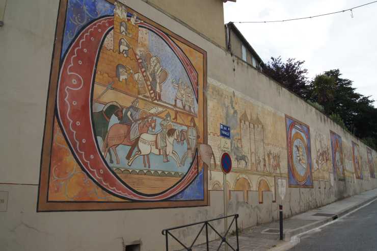 Efter någon timmes promenerande slinker vi ut genom den medeltida porten och vandrar ner mot Ville Basse. På vägen nerför berget ser vi flera bevis för stadens glansfulla dagar. Väggmålningar med medeltida riddare och fagra möer hör till historien. Liksom flaggor på husfasaderna som vittnar om olika ordrar. Kanske inte lika gamla som kamraterna i brynja och lans. Men tillräckligt spännande för att göra intryck på husbilande turister från Sverige. &
