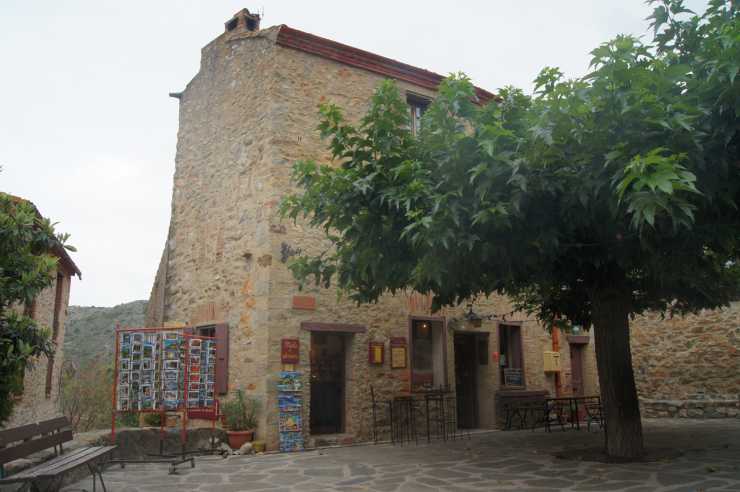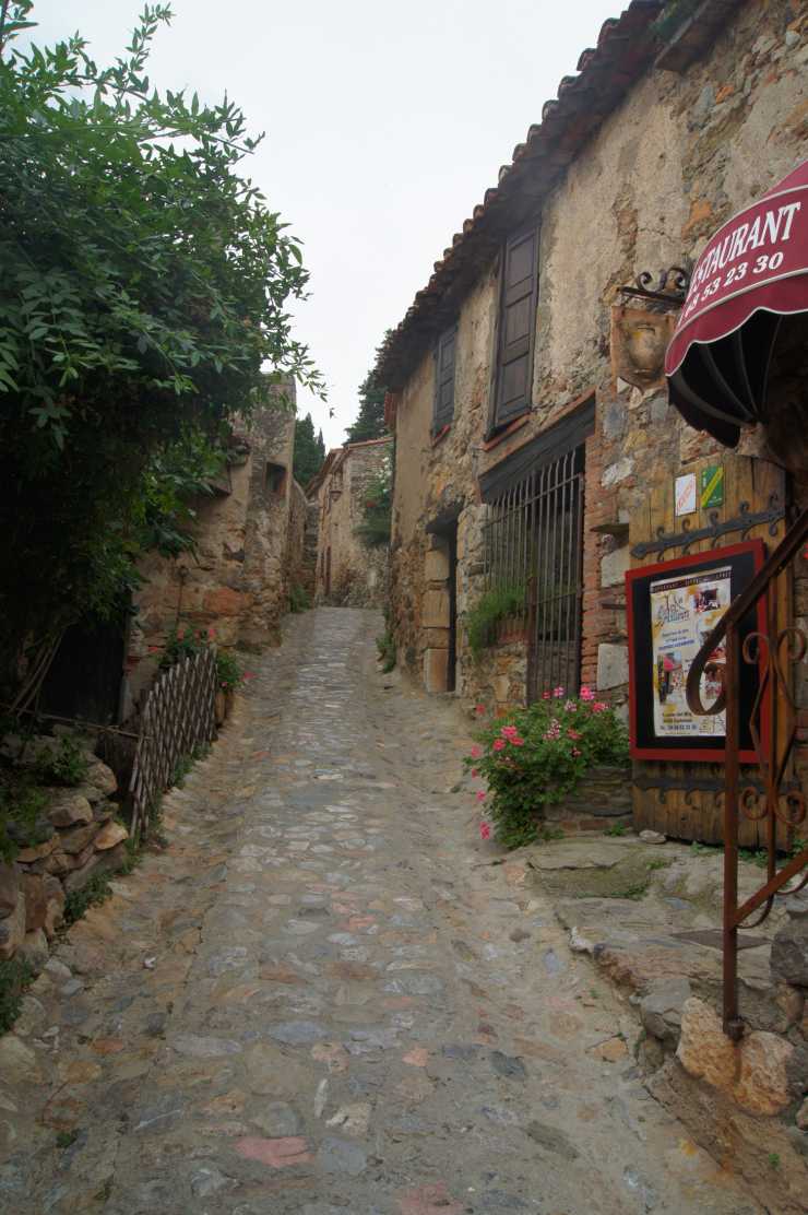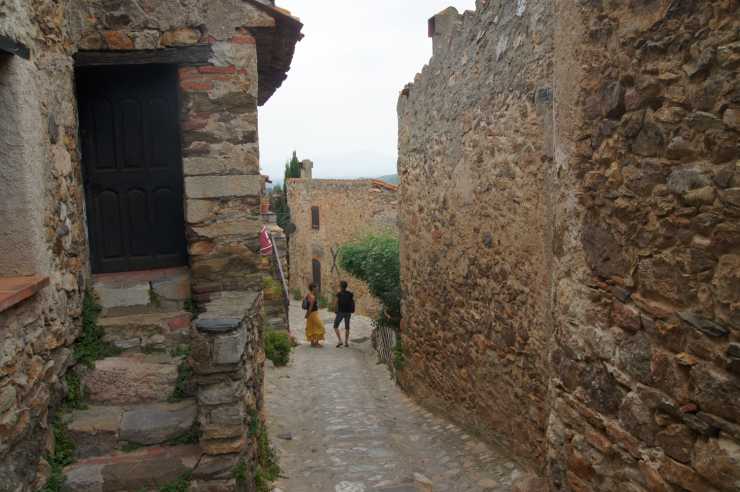 Trånga gränder och stenhus i pittoreska Castelnou.