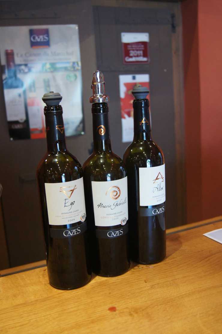 Vi provsmakar oss igenom några av husets storsäljare, men bjuds också på dryck ur en och annan dyrgrip. Besöket resulterar i fyra flaskor biodynamiskt vin och dessa prövar vi senare vid fyra olika tillfällen. Det sammanlagda intrycket av Cazes-vinerna är att alla smakar gott utan att ge typiska rödvinssymtom som tung känsla i kropp och knopp. Rekommenderas!