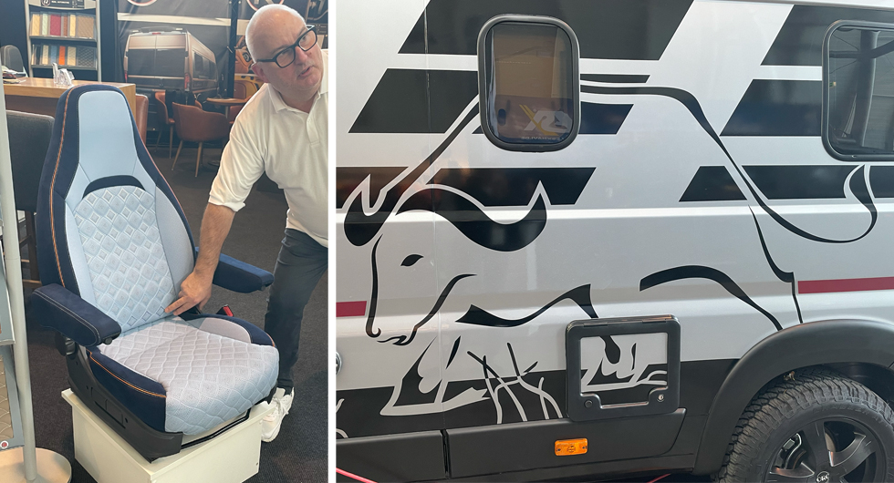 Klart det ska vara en buffel på plåtisen när sätena kläs i buffelskinn. Rühl Automotive gör om bilar och husbilar efter kundernas behov, berättar försäljningschef Hans-Jürgen Michalik.