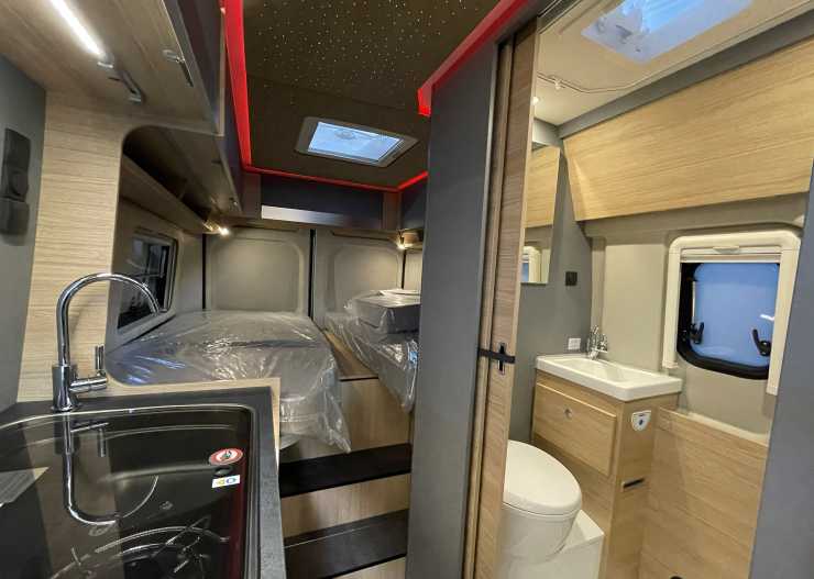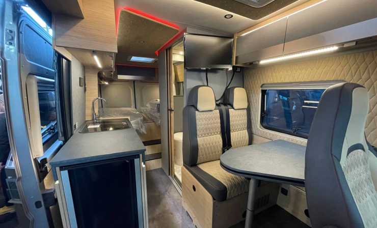 I deras monter visas en ombyggd plåtis från Pössl, med mycket godis både utvändigt och invändigt. Plåtisen, som kostar cirka 64 000 euro, motsvarande 660 000 kronor, på den tyska marknaden, ligger ombyggd på 104 000 euro, eller 1 071 000 kronor. Nästan dubbel så mycket, med andra ord men så är den också något utöver det vanliga. Rühl river ut allt innan de tar tag i sina objekt.