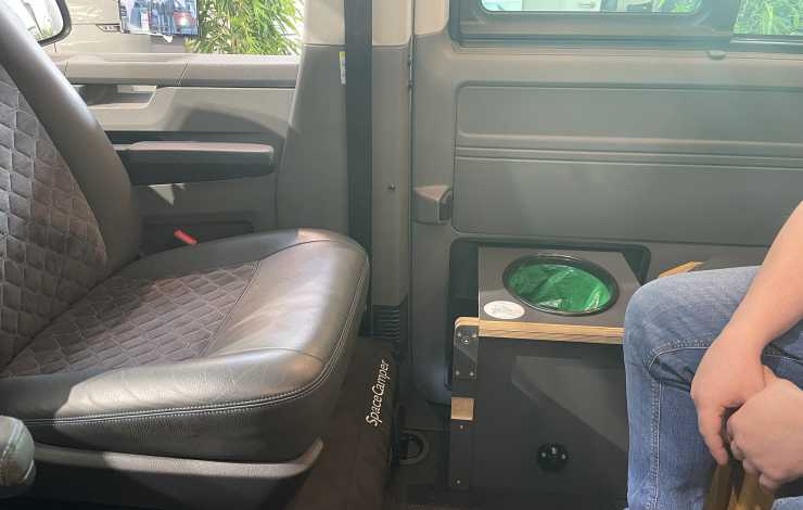 Vi gillar särskilt de smarta skynkena i flera sektioner som förvandlar området under den uppfällda bakluckan till precis det rum man just då behöver. Sedan har vi förstås den lilla toaringen som kan sättas i skjutdörren med en enkel påse under som uppsamlingskärl...