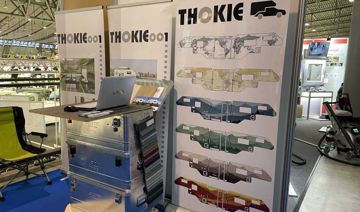 De mer lokalt kända i Tyskland, Thokie campers, erbjuder i sin monter en rad olika motiv och mönster på sina fordon. Det är bara att välja: Camouflagemönstrat eller berglandskap?