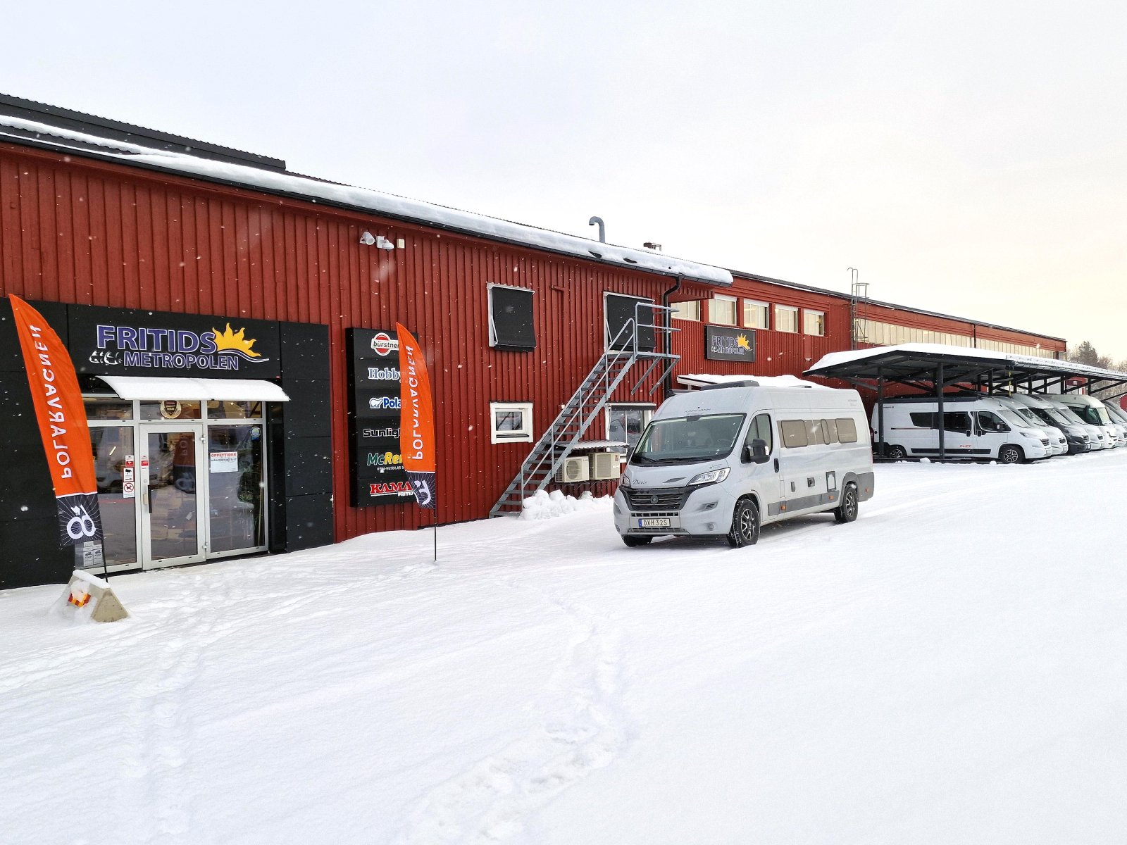 Markområdet är 17 500 kvm vilket gör att Fritidsmetropolen har en av norra Sveriges största anläggningar med cirka 100 fordon i lager.