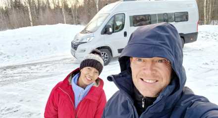 Vid vårt besök imponerades vi av det äldre paret från Nederländerna som inte räds svensk vinter i denna lilla hembyggda campervan.