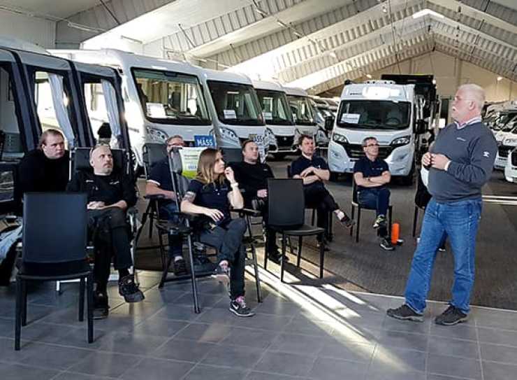 – För att peppa cyklisterna lite extra lovade vi att skänka 100 kronor extra per cyklad kilometer. De cyklade totalt 128,8 kilometer, vilket betyder att vi skänker 13 000 kronor, säger Husbilslandets försäljningschef Jonas Pettersson.