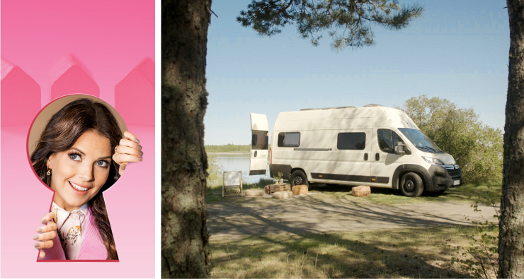 I nionde säsongen av tv-programmet "Vem bor här?" som sänds på SVT var för första gången en husbil med. Ett unikt inslag i programmets historia. Vem bor här? går ut på att fem deltagare besöker respektive hem under en dag och ska gissa vem som bor var.