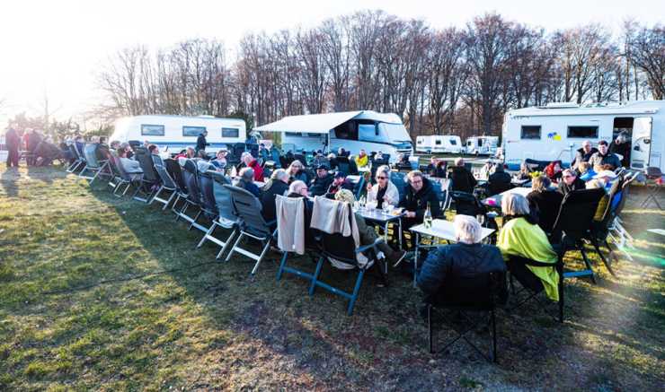 Över 70 husbilar strålade samman för att fira påsk tillsammans i Sölvesborg. På långfredagen dukades det upp långbord på campingen.