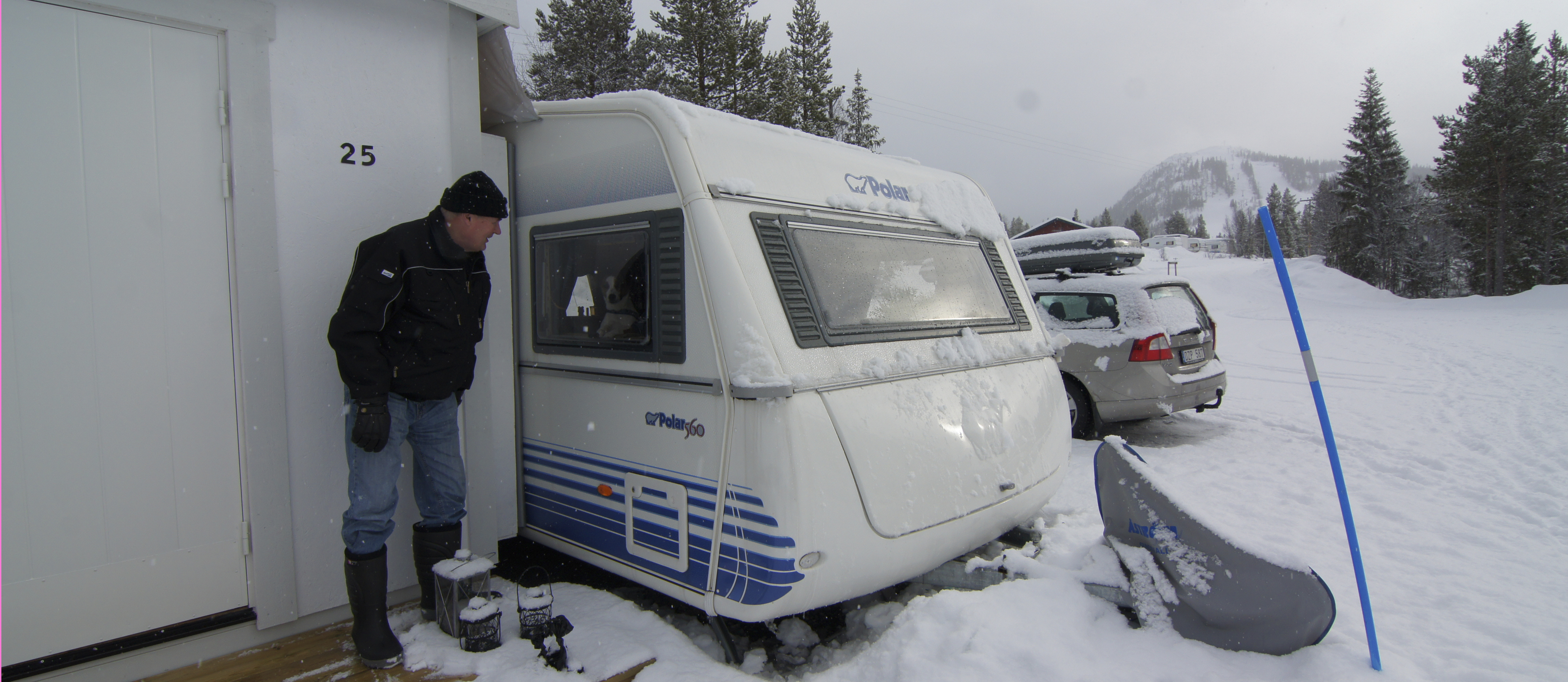 Här campar de vintertid med sina respektive. Vagnarna står uppställda i bästa sydvästläge, med sol från morgon till kväll. De båda paren känner varandra som campinggrannar även sommartid. Då står husvagnarna på samma camping nära havet i Härnösand.