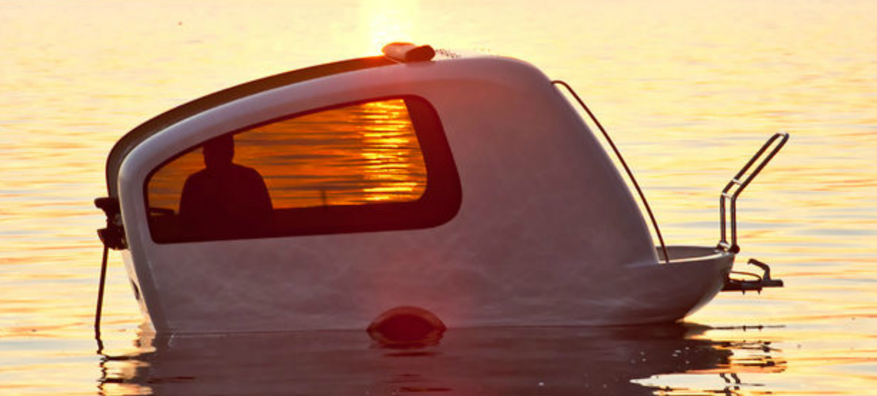 Sealander är något så ovanligt som en amfibiehusvagn som med hjälp av utombordsmotor kan ta sig fram i vatten. Sealander visas på Kistamässan i februari.