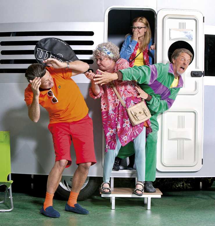 Följ med det omaka paret Göran och Fia Lönn genom campingens underbara värld. Som oftast i dessa föreställningar börjar det med att allt går fel, och sedan fortsätter det. Det som ska bli en avkopplande semester i husvagnen blir istället allt annat än just det. I somras slogs besöksrekordet på Vallarnas frilufsteater när 74 126 personer besökte teatern under sex veckor. Årets föreställning har premiär söndagen den 1 juli 2012 och spelar till och med söndagen den 12 augusti.