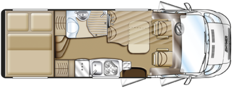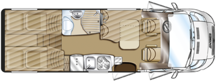Inuti husbilen sätter naturligtvis Hymer sin prägel på lösningarna. Och Hymer har verkligen lagt manken till för att kvaliteten ska märkas, det gäller allt ifrån detaljarbetet till lösningar som elektrisk trappsteg vid entrén, plant vardagsrumsgolv, rymliga sittplatser och bord som går att förlänga. I köket hittar du en trelågig spis och ett kylskåp på 142 liter med ett frysfack på 15 liter. Den isolerade och uppvärmda färskvattentanken rymmer 120 liter och den likaså uppvärmda gråvattentanken som rymmer 100 liter töms via en elektrisk pump. Inredningen finns i två träslag och tio klädselvarianter för att tillmötesgå många olika smaker.