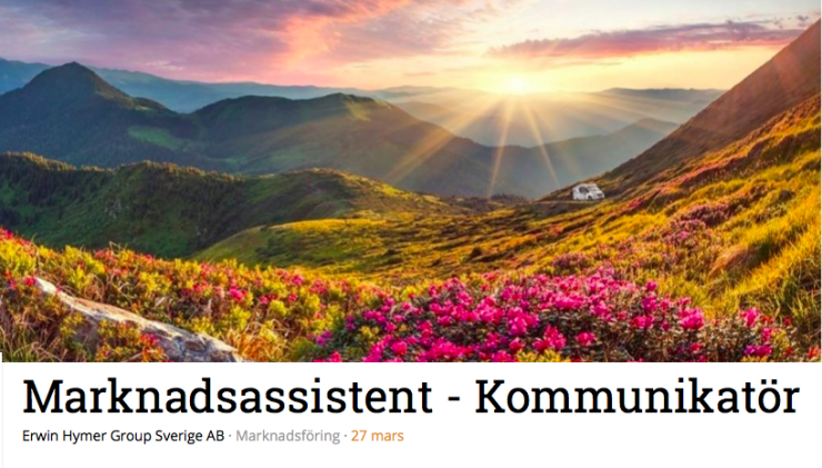 Rollen som marknadsassistent är ny inom ERWIN HYMER GROUP SVERIGE och det finns mycket stora möjligheter till utveckling. Vi söker dig som brinner för kommunikation, digital marknadsföring och event. Du kommer att rapportera direkt till Erwin Hymer Groups Marknadschef.