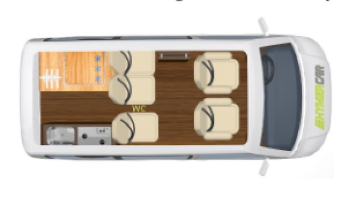 Skor brukar ofta vara ett problem även i större husbilar. I en nyutvecklad möbelmodel finns ett speciells skoskåp och över ett skåp med hyllor. Bilen har möjlighet till fem sittplatser och väljs den inredningen inkräktar det ändå inte på skoskåpet men det övre skåpet försvinner.