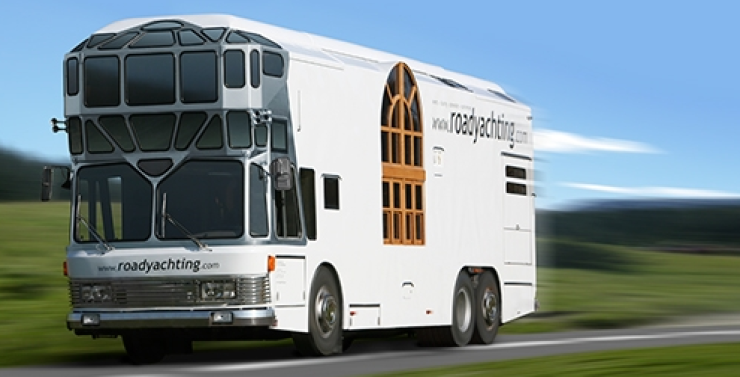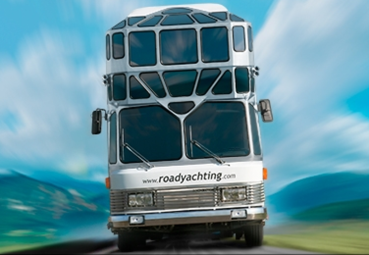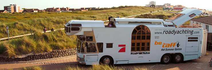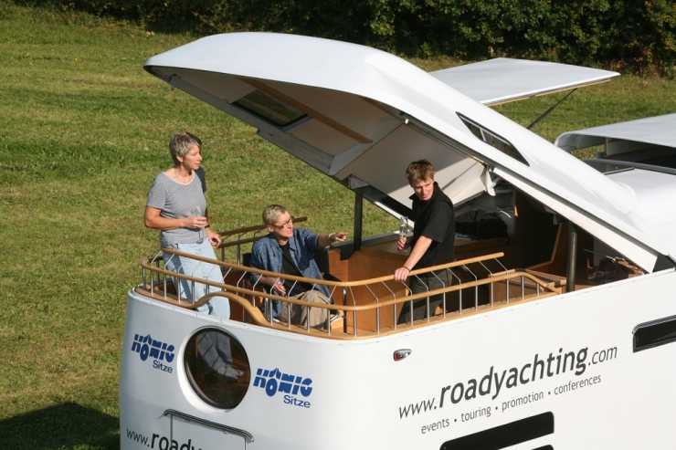 Det finns många sätt att synas på och ett av dem är att köra en udda husbuss. Företaget Roadyachting håller till i Kaufering utanför München och deras buss som byggts på en Neoplan från 1971 hyrs ut till privatpersoner och företag som vill synas och samtidigt ha det bekvämt. I fronten ovanför förarhytten finns en slide-out och det tycks vimla av udda lösningar.