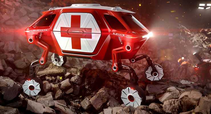– Elevate kan köra till det krisdrabbade området och kliva över bråte och sönderriven asfalt, säger John Suh, vice vd på Hyundai, och fortsätter med att berätta att fordonet också kan användas i mindre akuta sitationer.