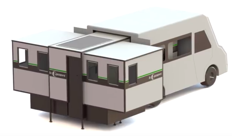 Enklast är att se den som en expanderbar låda som skjuts inne i skåpet på en van. När den dras ut kan man veckla ut sidorna och man får en yta som är fyra gånger så stor som den ursprungliga. Din smartphone, eller annan wifiutrustning, används som fjärrkontroll för att styra det hela. Inga modifieringar sägs behövas på vanen som annars kan användas som en vanlig transportbil.