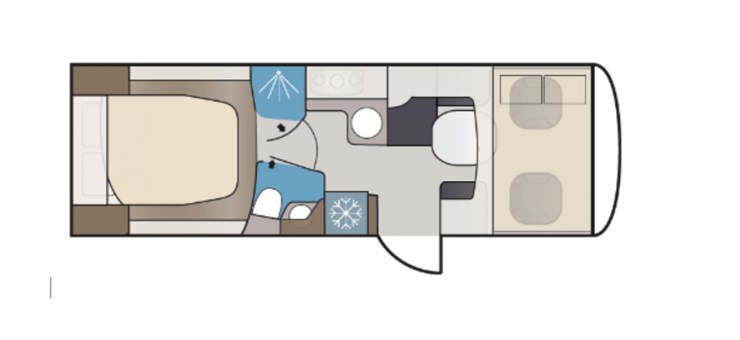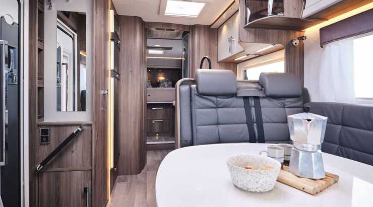 Den 7,9 meter ånga i790 LQB, som finns i Crown-, och Imperialutförande, är en nyhet med queenbed, nedsänkbar dubbelsäng över framstolarna och bäddbar dinett. Alltså sovplats för fem.