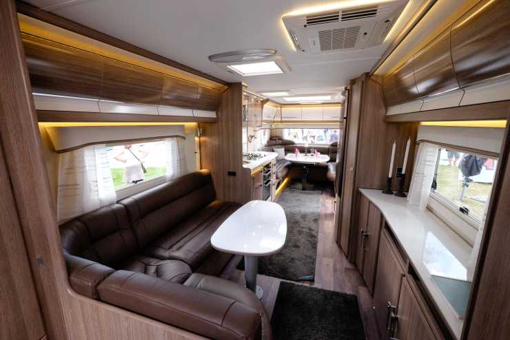Kabe Imperial 1000 är den största och mesta vagnen de producerar och planlösningen i husvagnen vi tittade in i heter TDL. Kabe har dock ett planlösningssystem de kallar Flexline som nästan inte ger några begränsningar på hur inredningen kan skräddarsys efter kundens önskemål.
