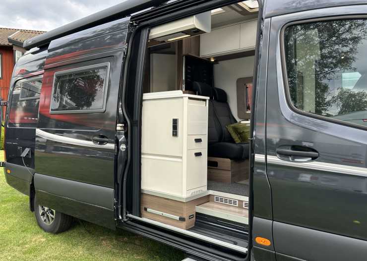 Den stora nyheten är annars modellen Kabe Ri810 med bakhjulsdrift. Något som efterfrågas, speciellt i Norge enligt Mikael Blomqvist. Produktionen av den beräknas börja i tidigt 2025. Grundpriserna blir 2484000 kronor i utförandet Crown och 2765000 för Imperial.