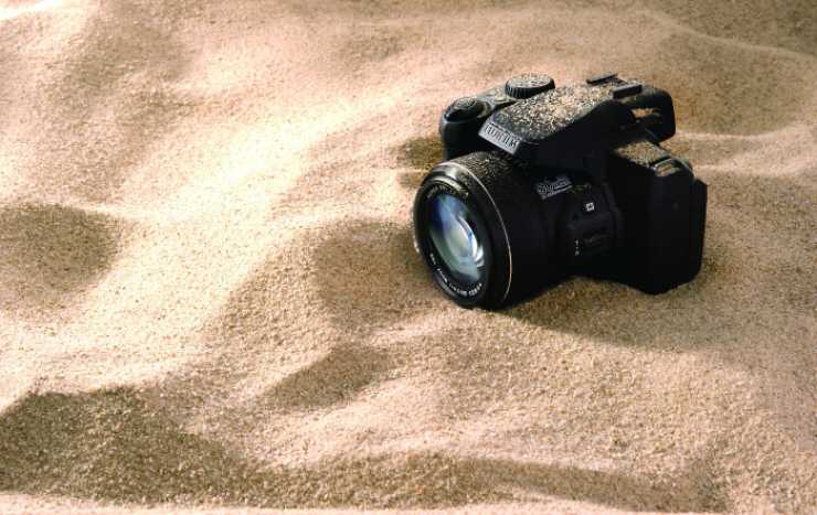 Det som Fujifilm hävdar och som gör denna kamera värd att ta upp här är vädertätningen. Det betyder att du kan använda den i både regn och dammig miljö, därav Fujifilms närmast övertydliga reklambild med kameran olämpligt liggande i sanden. I vårt klimat känns kanske den ovanliga fukttätningen viktigare och det ska den enligt Fujifilm klara på motsvarande bra sätt. Det är egenskaper, om kameran håller vad Fujifilm lovar, som är mycket vettiga för oss som är mycket ute och rör på oss och något som kan vara värt att betala någon krona extra för. Inte förrän du kommer upp i systemkamerornas dyrare segment får du motsvarande fuktegenskaper.