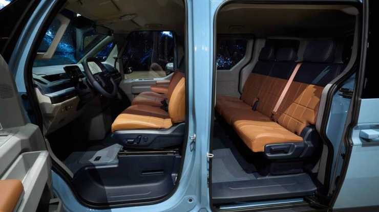Med hjälp av avtagbara paneler kan passagerarsätet fram förlängas och förvandlas till en loungesoffa. Ännu fler sittplatser får man om man fäller upp sittbänkarna över hjulhusen – där det också finns ett litet bord.