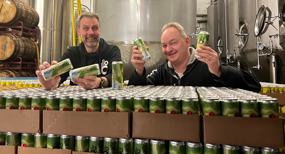 Dan-Magnus Svensson från Brygghus 19 och Peter Sjöstrand från Youtubekanalen Livet på och utanför scenen visar upp sin öl: #kommaframöl.