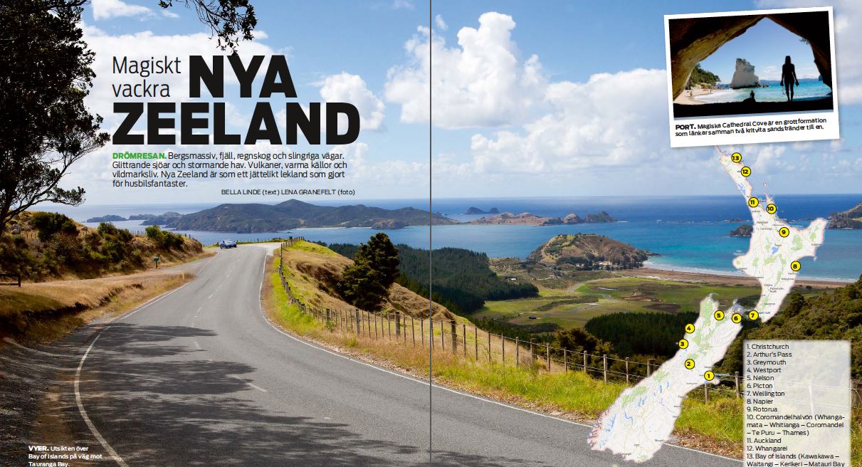 Nya Zeeland: Bergmassiv, fjäll, regnskog och slingriga vägar. Glittrande sjöar och stormande hav. Vulkaner, varma källor och vildmarksliv. Nya Zeeland är som ett jättelikt lekland som gjort för husbilsfantaster.