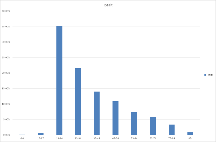 Överrepresentation av singelolyckor i vägtrafik för förare mellan 18-24 år.