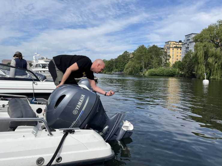 MINUS: båtars bränslemätare är sällan bra och det gäller även Yamarin. Därför baserar Skipperi förbrukningen på hur mycket bränsle som skickats in i motorn - vilket är bra. Ibland är jag dock lite osäker på om tanken är full vid avfärd då mätaren visar fullt oavsett om där finns 70 eller 100 procent mängd. När propellern ska fotograferas med mobilen är det bra att ha långa armar, se bild.