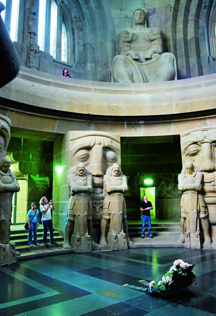 Invändigt i monumentet finns ett antal storvulna salar och kryptor med dystra stora statyer som ”Totenwächter” som håller vakt vid den symboliska graven för 120000 stupade soldater. Kryptan har en fin akustik och används ibland för konserter.