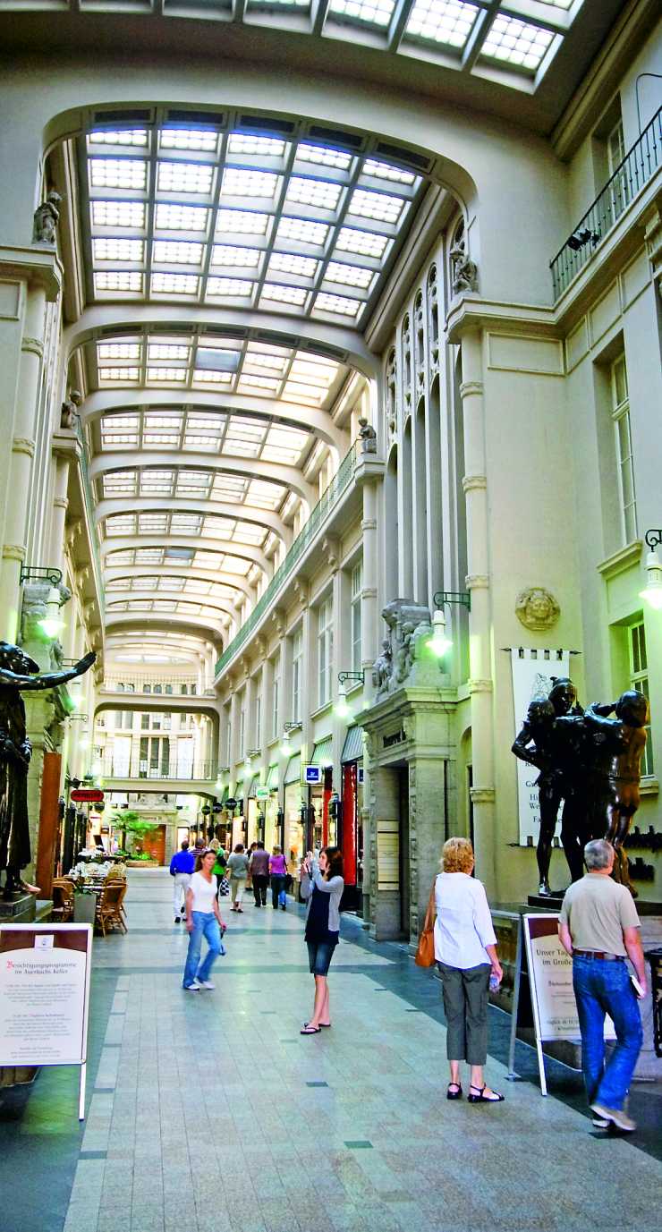 Vackra gamla inomhuspassager med snygga butiker och dyra restauranger.