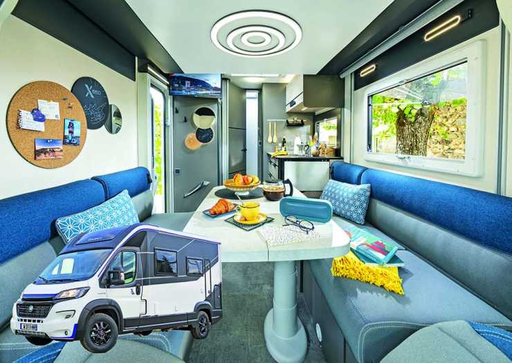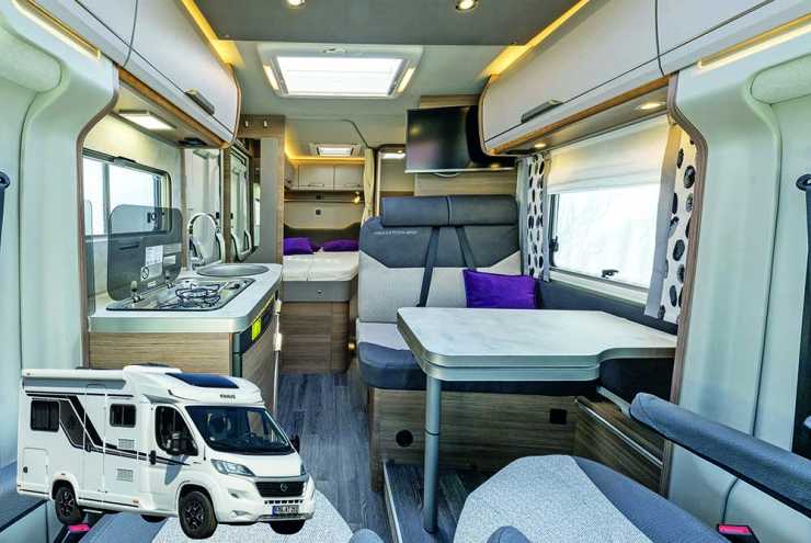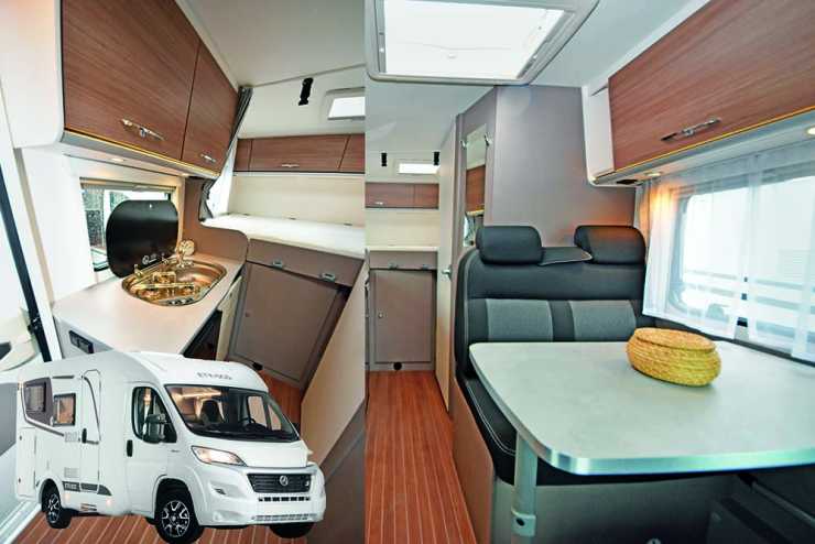 Populära Sunlight har döpt sina smalplastisar till V60, V66 och V69 där v står för ”van” och alla tre är 2,14 m breda och har utrustningsnamnet Adventure Edition. Minsta V60 är bara 5,95 m lång och har tvärbädd längst bak. Den lite större V66 är 6,55 m lång har har höga långbäddar medan den största V69 är 6,86 m lång och har queenbed. Samtliga har Sunlights smarta och kompakta badrum med vikbar handfatsvägg som ger en rymlig dusch. De är byggda på Citroën Jumper och har lågramschassi samt 140 hk.