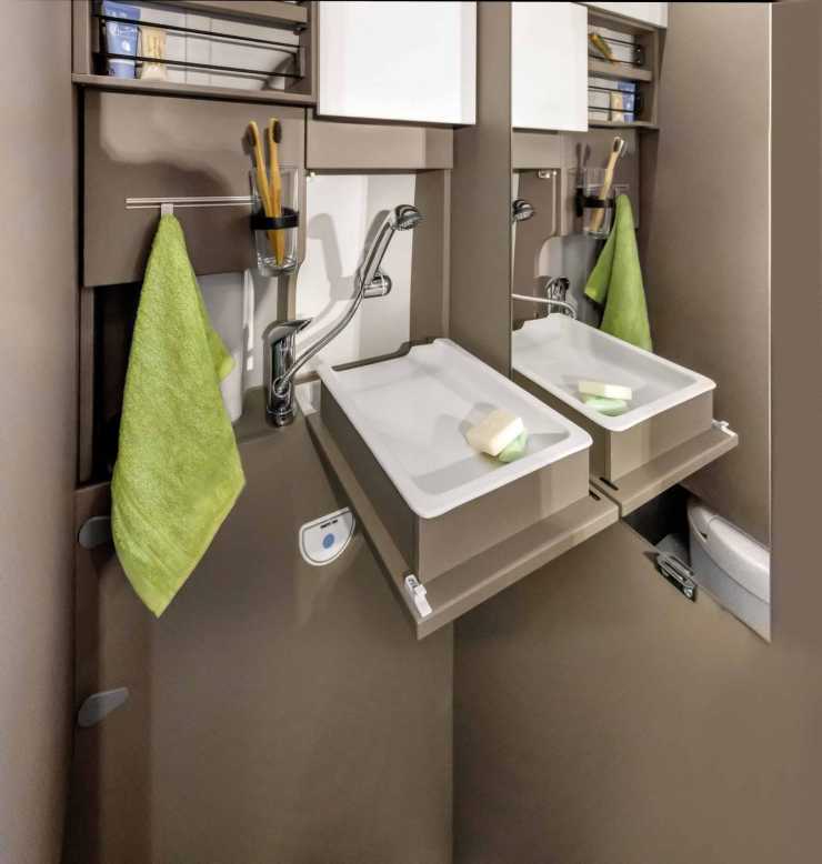 Hygienutrymmet är också konstruerat för att stjäla minimalt med utrymme.