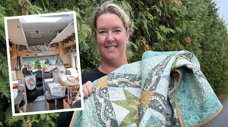 Maria Bussler säljer allt som behövs för att sy lapptäcken i sin "quiltmobil".