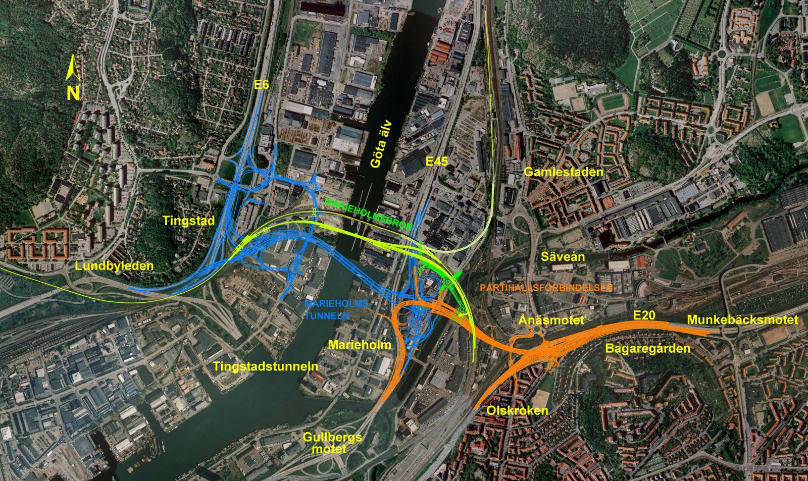 Marieholmstunneln, som är en del av det Västsvenska paketet, ska avlasta Tingstadstunneln och länka samman E6 med E45 och E20 via Partihallsförbindelsen. Den kommer också öka tillgängligheten och minska sårbarheten till Göteborgs hamn, Norra Älvstranden och industrierna på västra Hisingen.