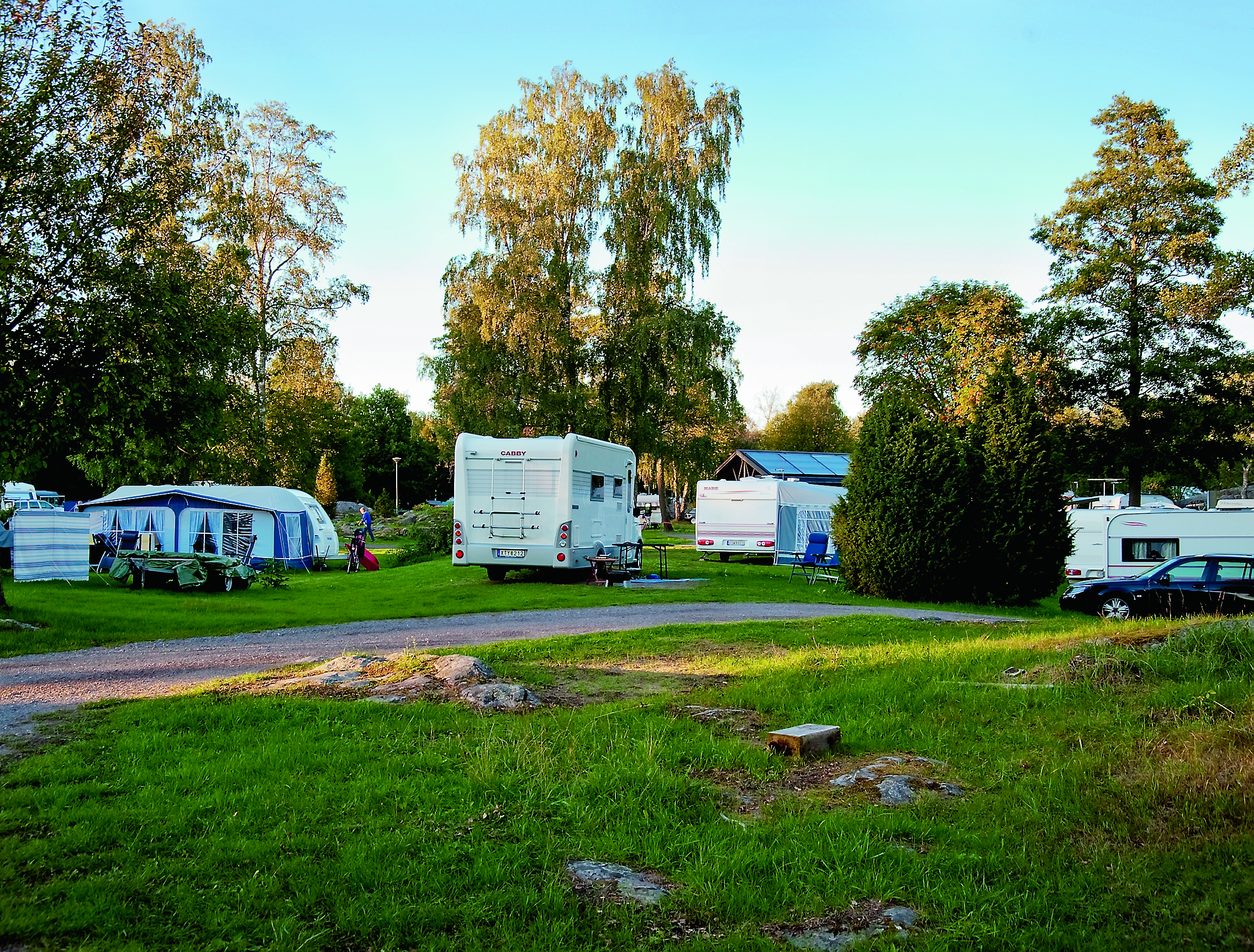 På området finns fyra servicebyggnader, utslagsplats med latrintömning. Sist men inte minst vill vi puffa för platsens solnedgångar – det sköna västläget gör dem helt bedårande.