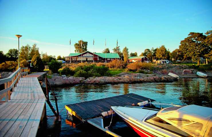 Campingplatsen ligger 2 kilometer nordväst om färjeläget.