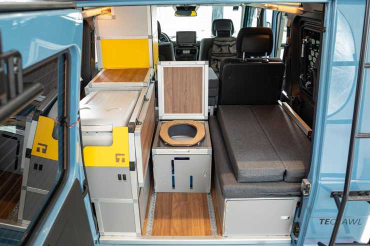 Inredningssystemet kan kompletteras med Terracampers egen variant på porta potti. Den kallas Xtreme Pott och är en torrseparationstoalett.