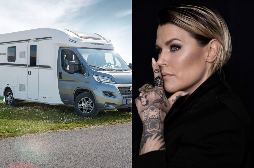 Mia Skäringer Lázár spelar in podcasten ”Skalla dagen” i en husbil.