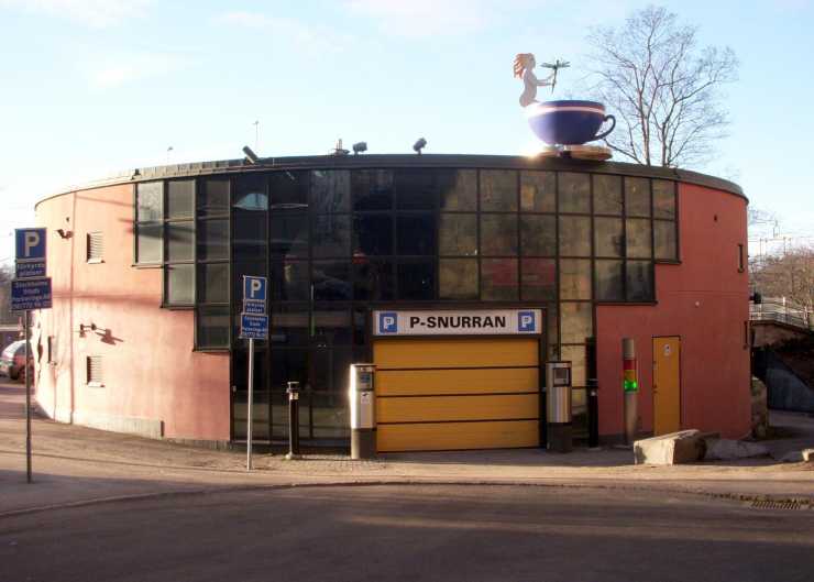 Det fyra våningar höga och moderna parkeringshuset är en rund historia på Rörstrandsgatan i Stockholm. Garaget heter P-snurran och snurrigt är vad det är. Kanske till och med lite för snurrigt och modernt. För alla utom de 18 drabbade är det lätt att dra på munnen. Sannolikt kommer de 18 aldrig någonsin att utnyttja ett liknande parkeringshus igen, de är nog innerligt trötta på en leende omgivning.