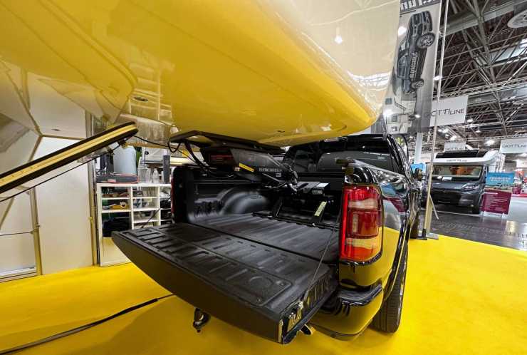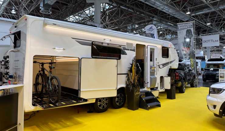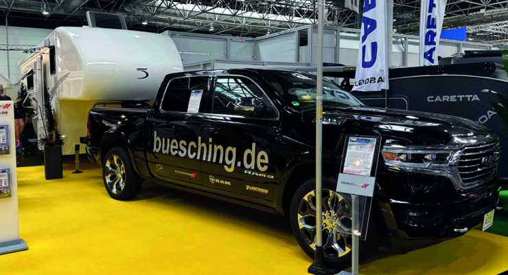 Det gick inte att missa den: En jättelik campingtrailer bakom en nästan lika stor Dodge Ram fyllde i princip en hel monter på Caravan Salon i Düsseldorf förra året.
