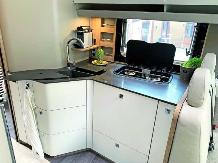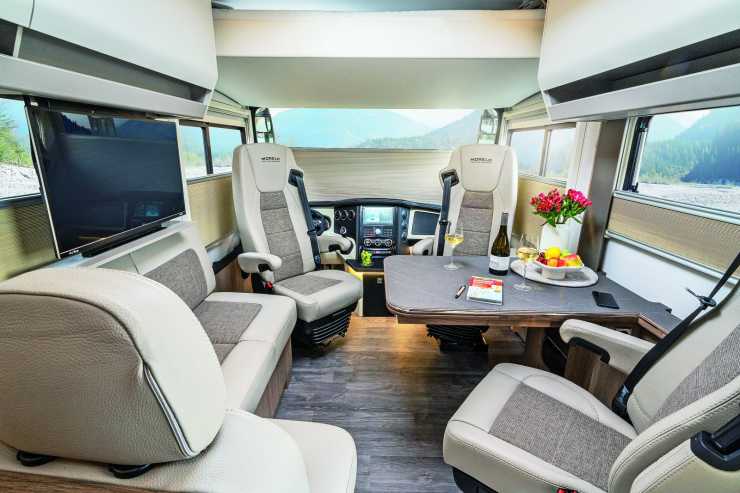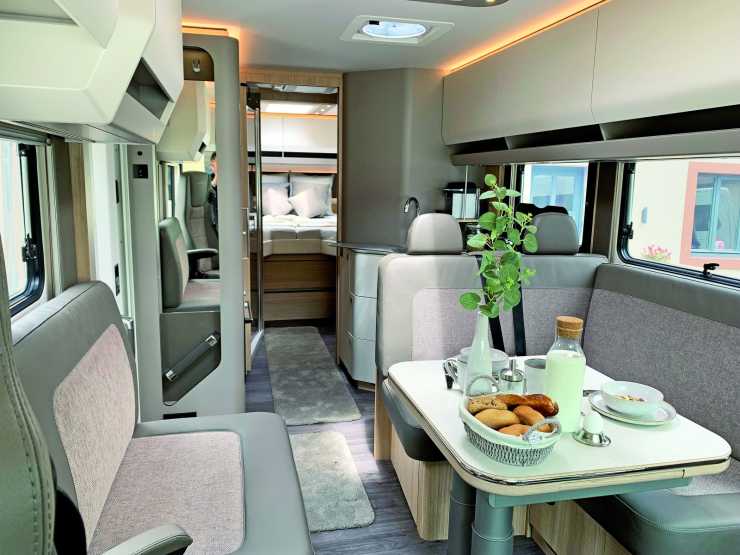Det nya interiörkonceptet för Loft-serien består av lättviktspaneler där bikakestruktur ger möbelstabilitet. Samtidigt har man övergått till handtagslösa överskåpsluckor. En ny manöverpanel Morelo Connect till bodelen gör att allt kan styras via pekskärm, app eller röst. Till exempel styra belysning och multimediaenheter förutom klimatet ombord.