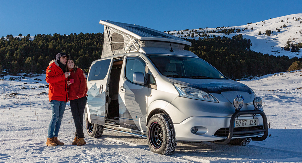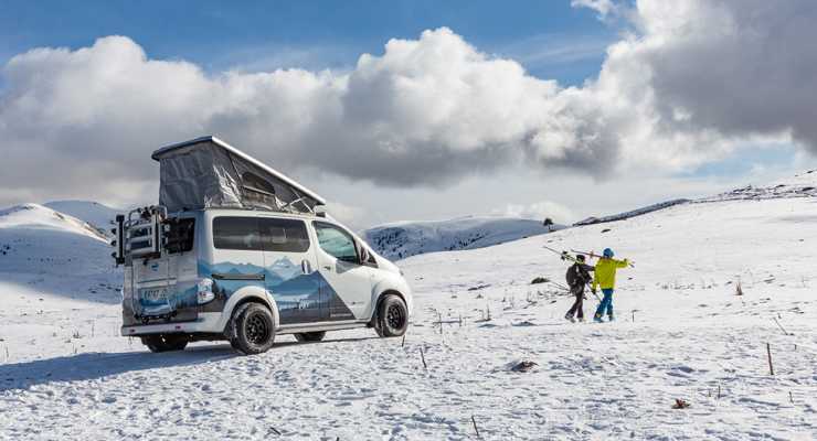 Konceptet e-NV200 Winter Camper är utrustat med offroad-däck och kraftigare stötfångare, samt förhöjd markfrigång och extraljus. Allt för att kunna tackla lite tuffare terräng. Det finns även ett popup-tält i taket.
