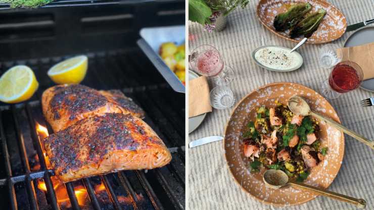 Grillmästarlaxen går dessutom snabbt att grilla. Den behöver bara 5 minuter på hög värme för att komma upp i 52 grader i innertemperatur. Vill man ha en saftig rosa lax räcker det med 48 grader, eller 53 grader för den som vill ha sin lax mer tillagad. Det kanske man får ta mer på känn när det handlar om camping.