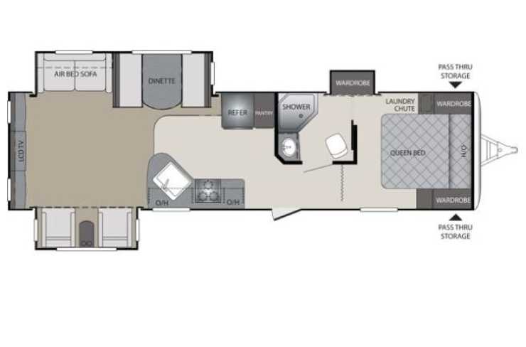 I vagnen finns sex sovplatser, en rejäl dusch, gott om sittutrymme och inte minst riktigt spatiös volym med de tre slideouts i utfällt läge. Köksdelen är också ovanligt stor och har en trelågig spis samt ett kylskåp på 227 liter medan du invid sängarna hittar exempelvis en tvättkorg under en golvlucka. Färskvattentanken rynner 155 liter och gråvattentanken är på 114 liter.