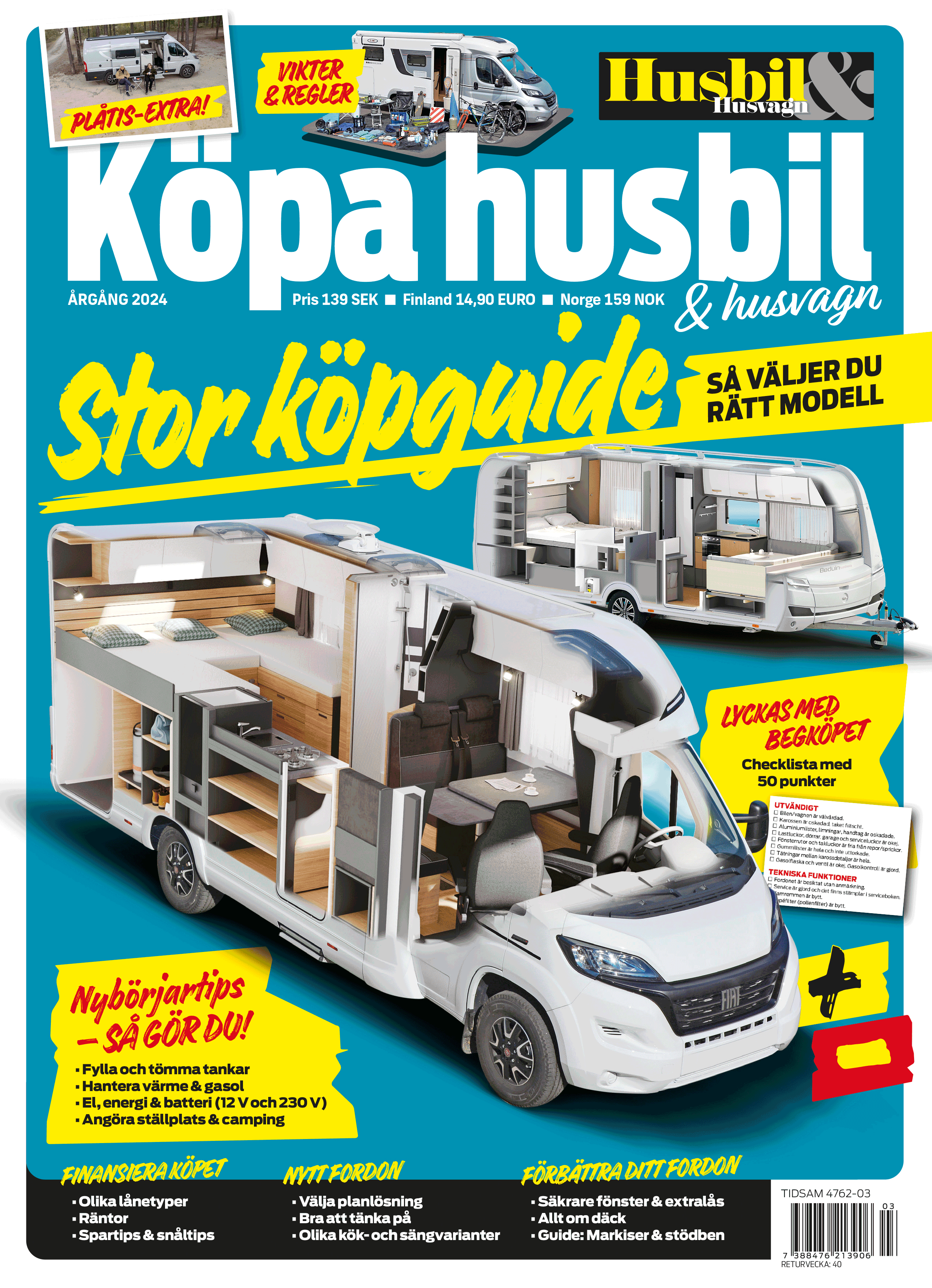 Vår specialtidning Köpa husbil & husvagn i 2024 års upplaga. Fullmatad med tips på allt du behöver veta inför ditt köp av en husbil eller husvagn – 116 sidor! Här är en del av innehållet:
