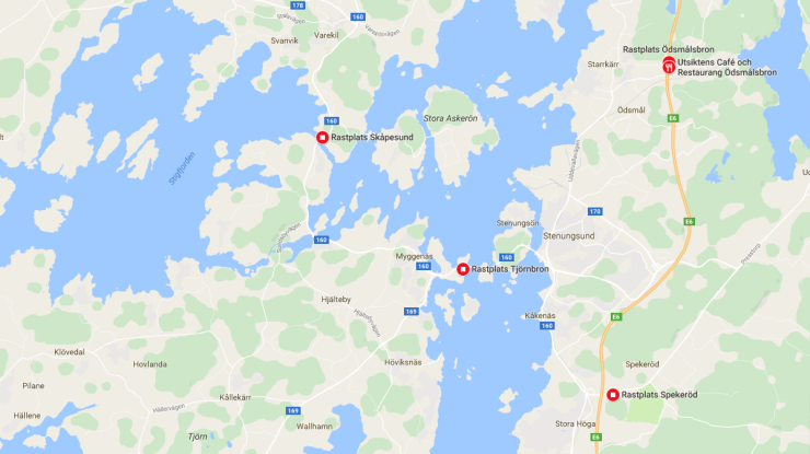 Här ligger Ödsmåls rastplats. Näraliggande Spekeröds rastplats är också hårt drabbad.