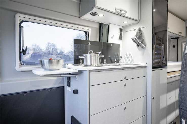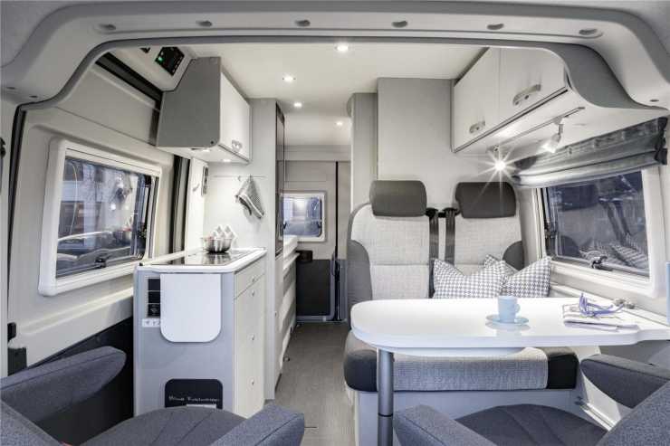 Ett uppfällbart taktält gör att det ryms fyra personer i den sex meter långa plåtisen. Priserna för 2020-modellerna är inte klara i Sverige i skrivande stund.