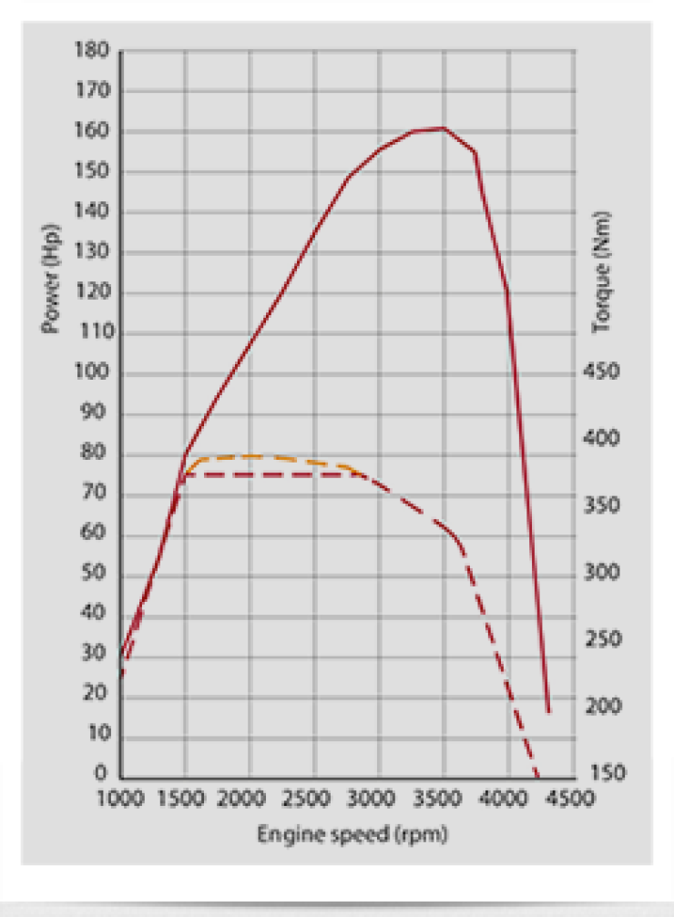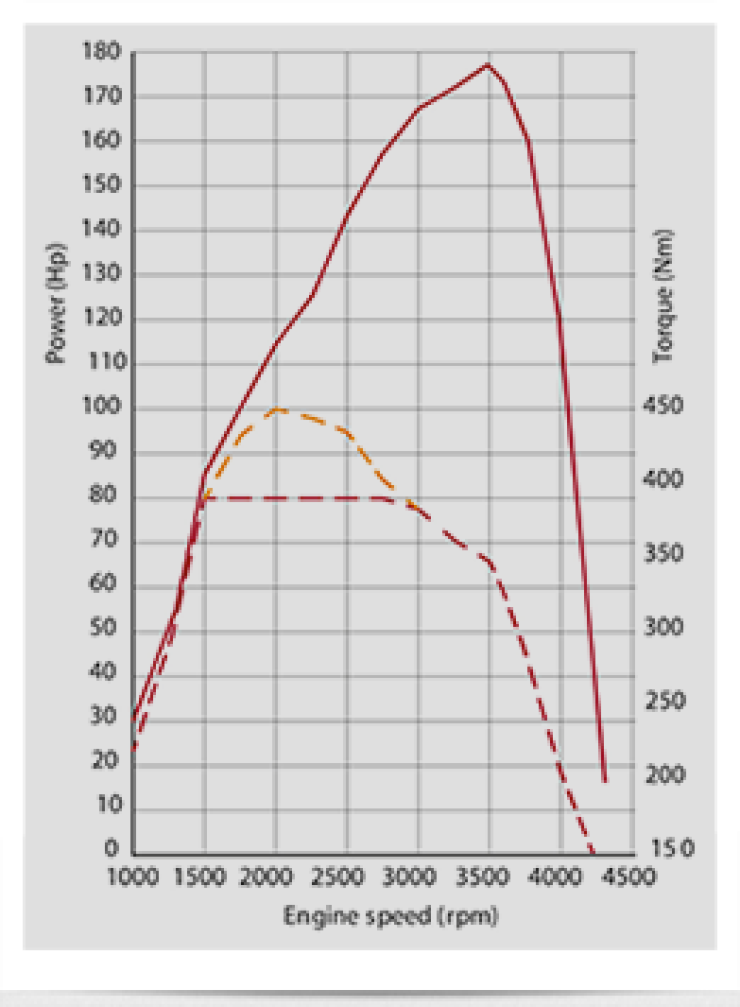 Effektdiagram för Multijet 180. Den lägre vridmomentsgrafen är för manuell växellåda.